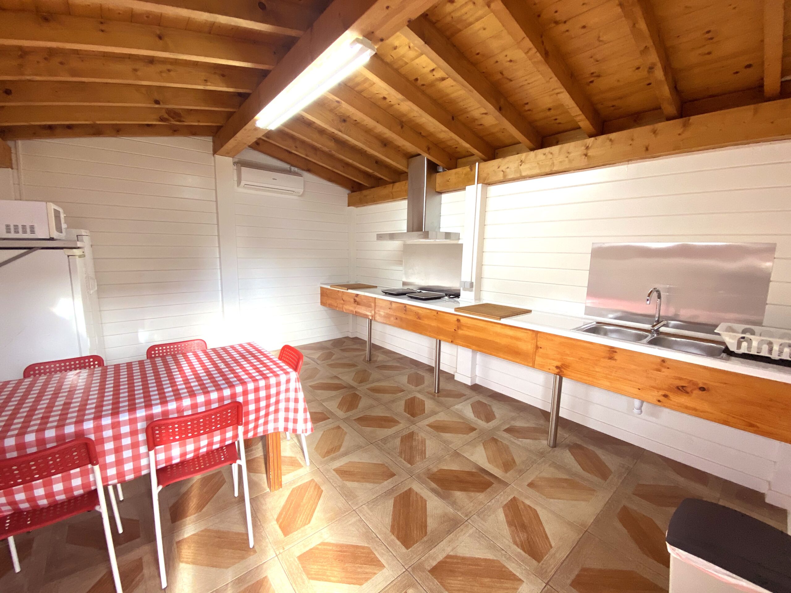15.000 m2 con un edificio principal dentro de un gran jardín con más de 100 especies de plantas y árboles diferentes, rodeado de cabañas de madera e instalaciones de ocio y esparcimiento.