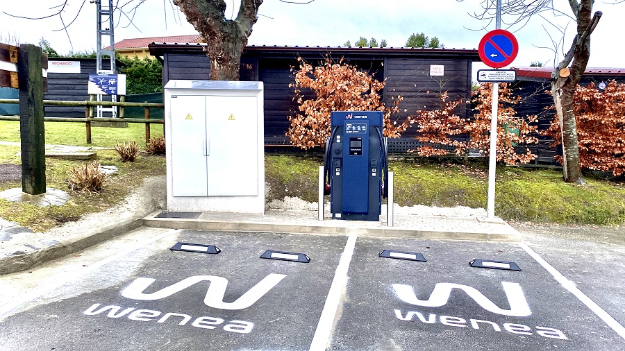 Aparcamiento con puntos de carga para vehículos eléctricos