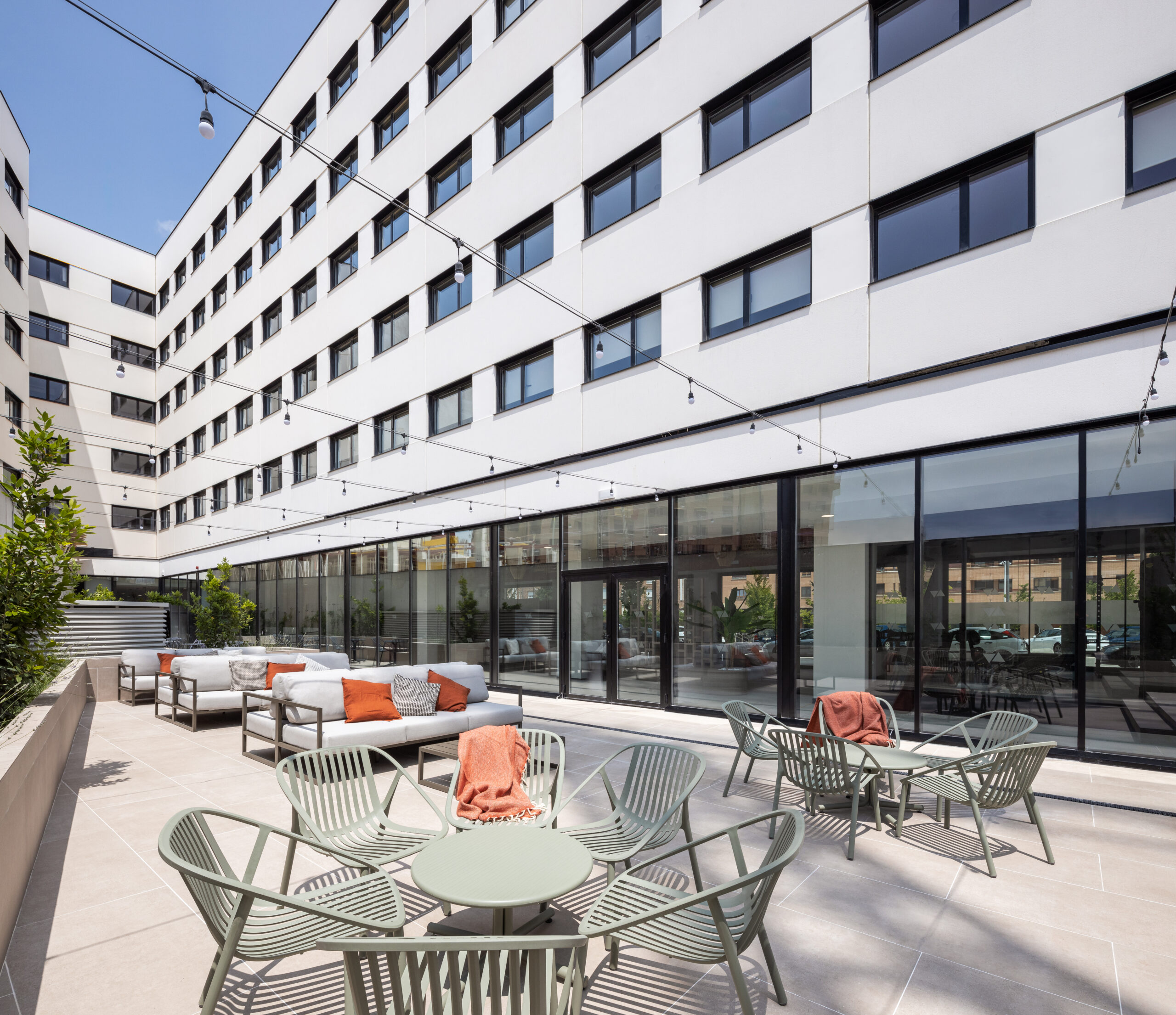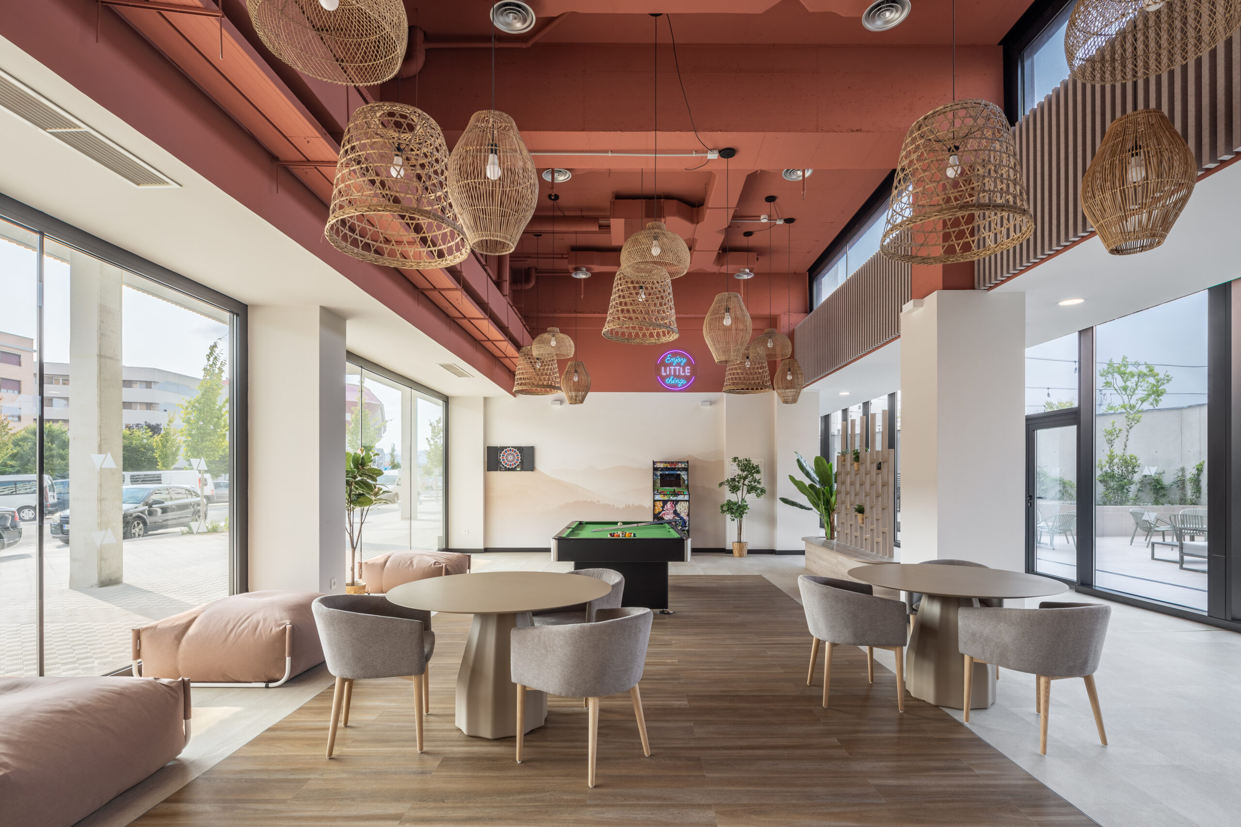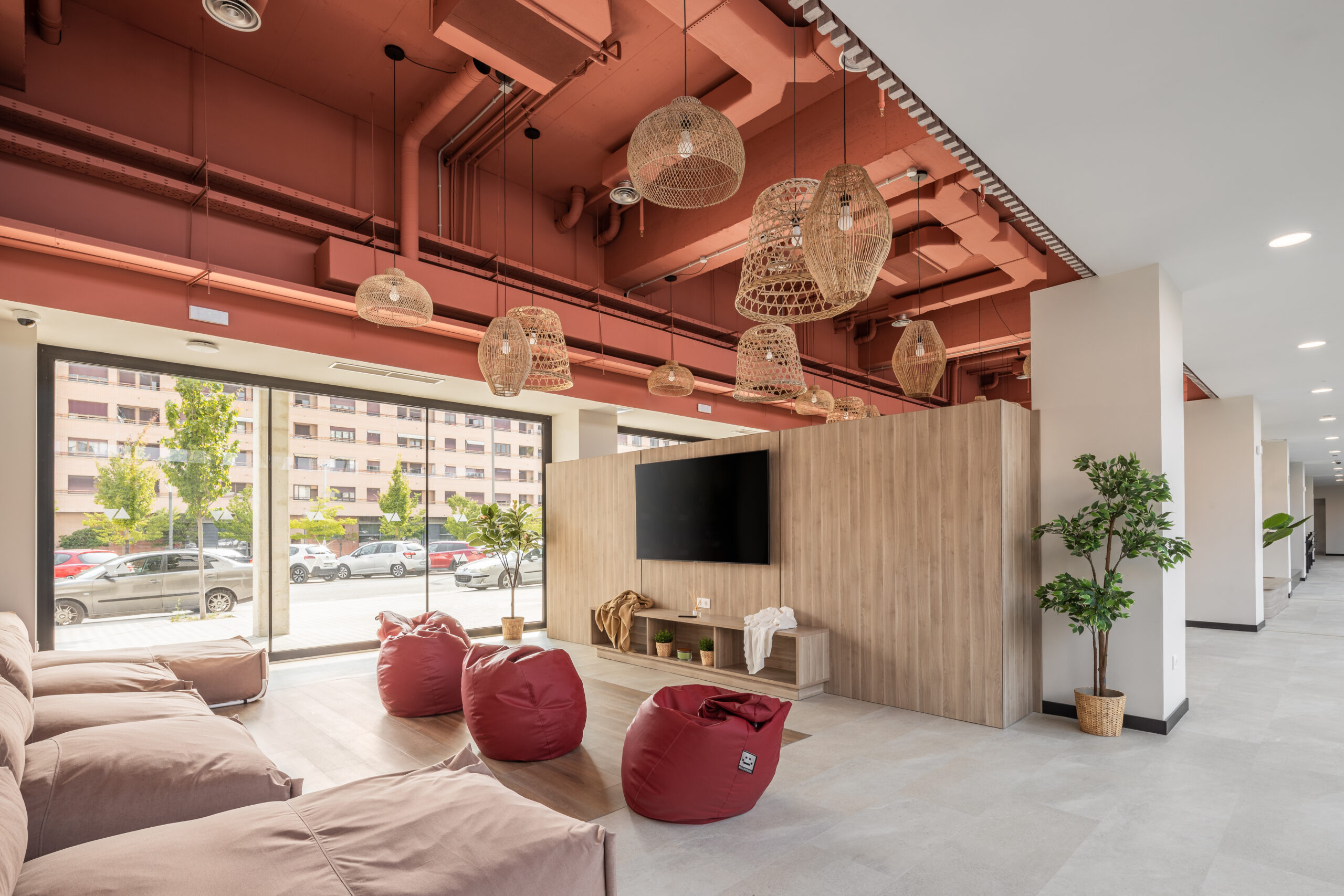Recepción, comedor, sala de juegos, sala de estar y TV, zona coworking, gimnasio, terraza, lavandería, salas de estudio y reunión.