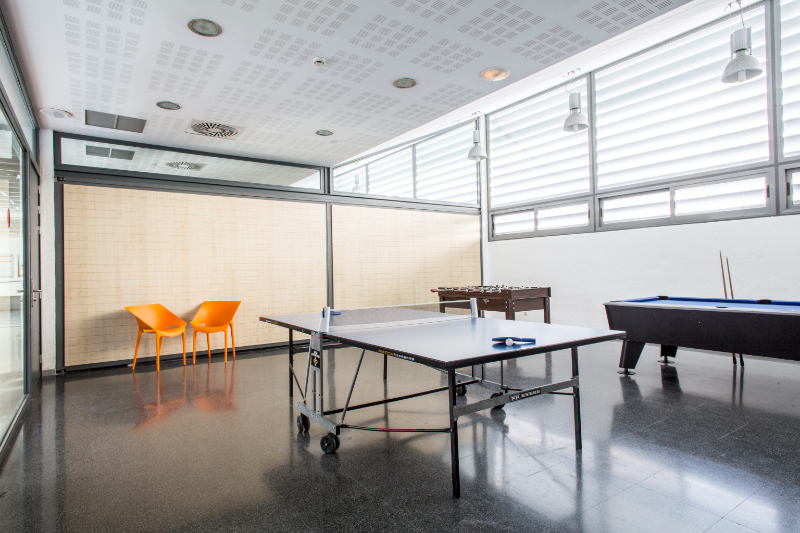 Sala fitness, sala de ocio, salas de reunión, comedor-cafetería, lavandería autoservicio y sala de TV y DVD.