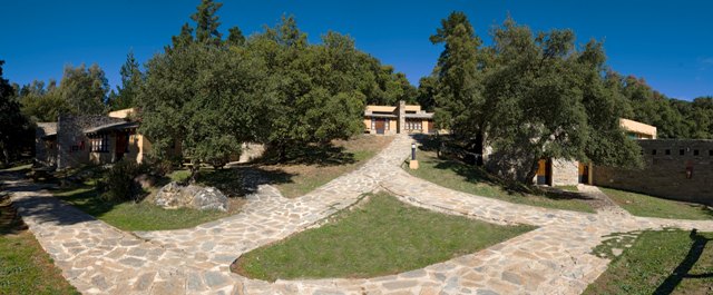 Una parte de la Instalación responde a un esquema de habitaciones con baño y otra parte a cabañas en piedra y madera, ambas opciones perfectamente integradas en el entorno. Las otras dependencias de uso común igualmente se han construido integradas en la naturaleza.