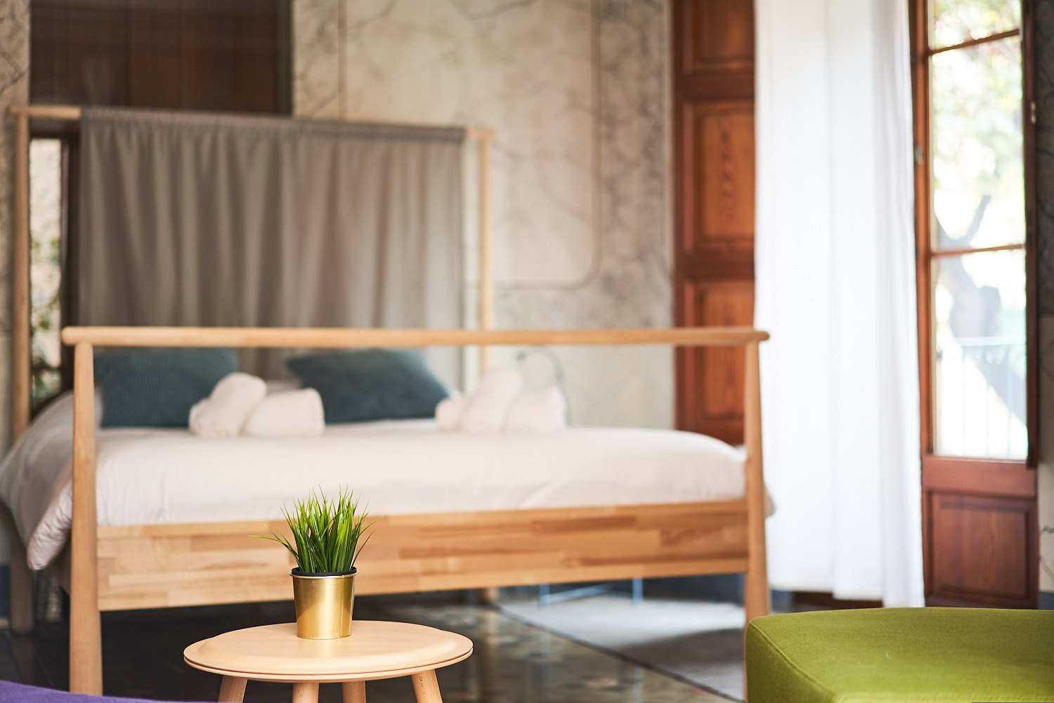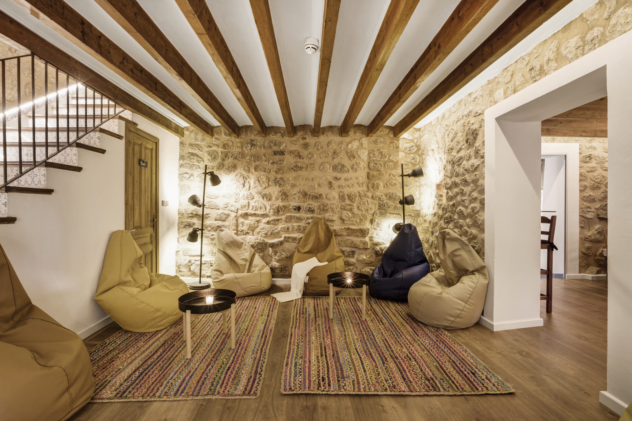 Casa Modernista de 1920 restaurada, manteniendo sus elementos arquitectónicos y ornamentales originales. Cuenta con 8 habitaciones ; dobles, cuádruples, familiares y dormitorios compartidos. Completamente adaptada para personas con movilidad reducida. Nuestras habitaciones están equipadas, con aire acondicionado, sistema de calefacción, colchones y almohadas de espuma viscoelástica. Se incluye juego de toallas, ropa de cama y uso de zapatillas crocks. La habitación doble deluxe dispone de baño privado con la antigua bañera de la casa recuperada y restaurada. Todas las otras habitaciones disfrutan de WC y duchas compartidas pero de uso individual.