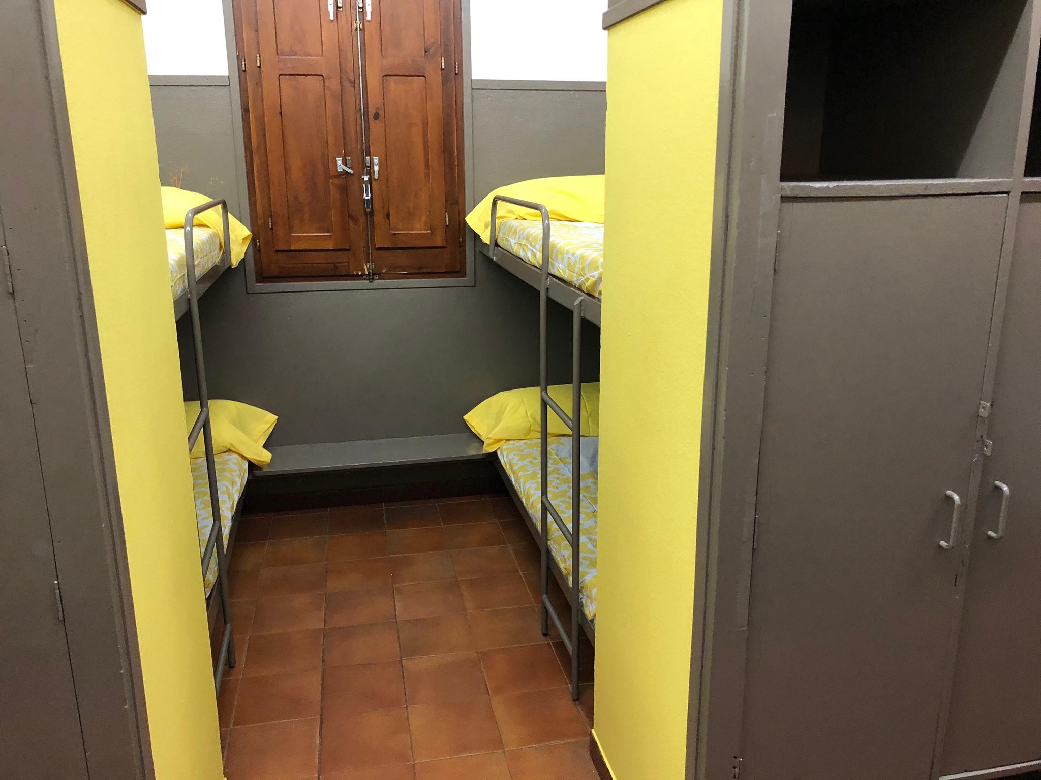 Capacidad: 196 plazas (habitaciones de 2, 6, 8 y 17 camas. Habitaciones de 6 con baño. 24 plazas adaptadas para personas con movilidad reducida.