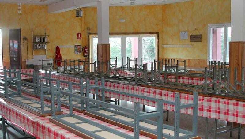 – Comedor cubierto con chimenea y calefacción: Con capacidad para 150 comensales por turno, donde se sirven menús equilibrados elaborados a diario por nuestro equipo de cocineros profesionales. Adaptamos las comidas a necesidades especiales como alergias o intolerancias alimentarias.