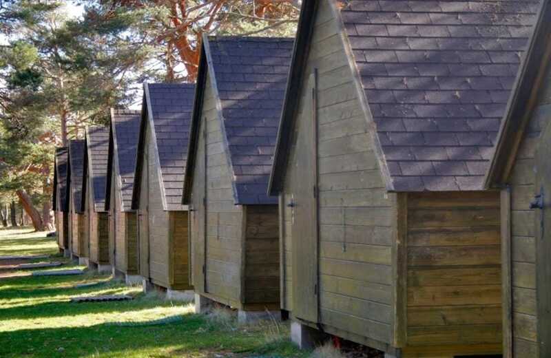 – 41 cabañas de madera: Con capacidad total para 210 personas (6 camas por cabaña), todas equipadas con luz y calefacción para una estancia confortable.