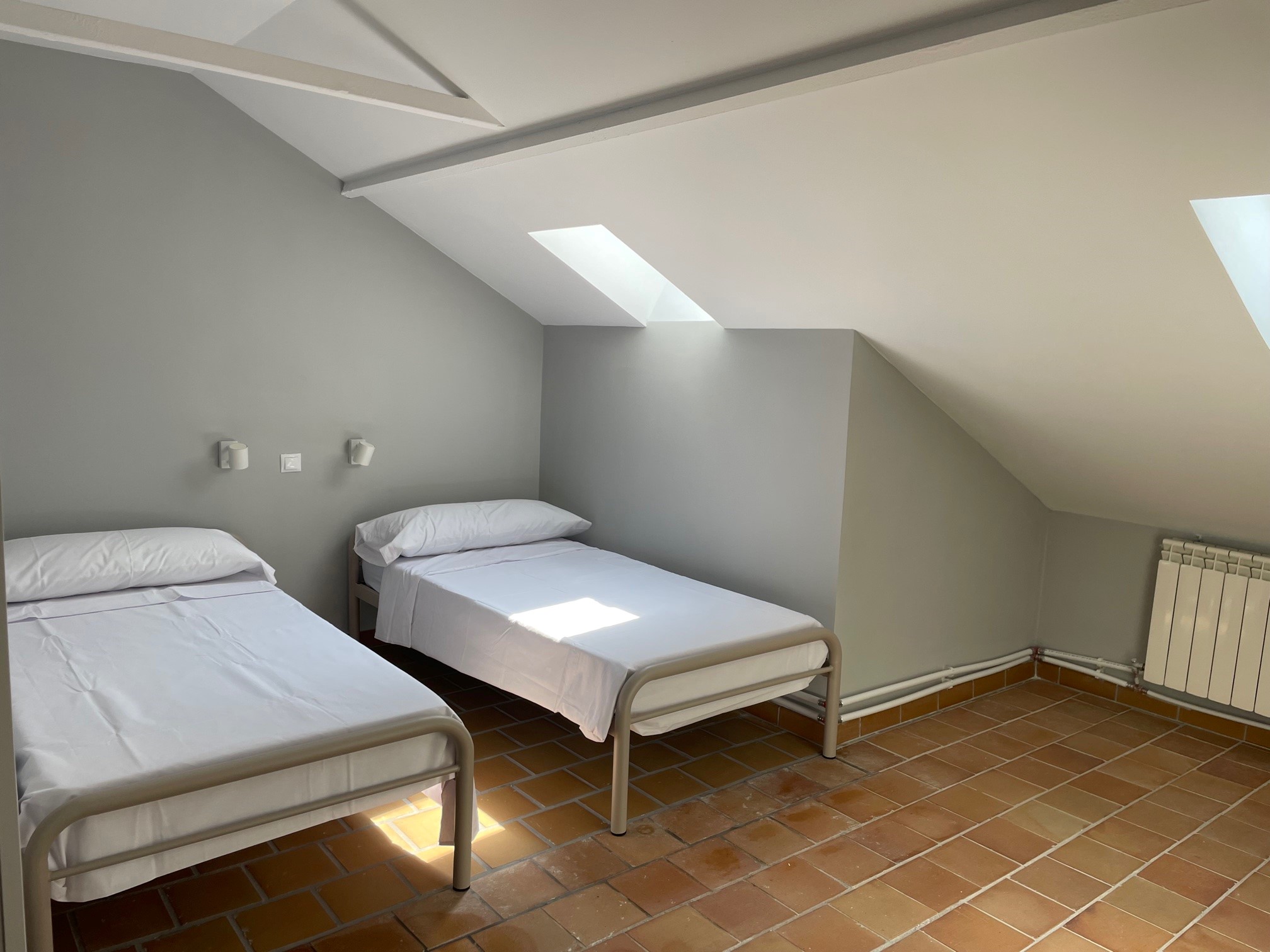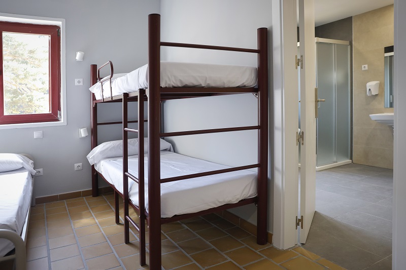 Capacidad total 70 PLAZAS, 6 adaptadas a personas con movilidad reducida // Habitaciones de 2, 3, 4 y 5 plazas con camas y/o literas y baño compartido cada dos habitaciones // Máquina de bebidas calientes, frías y snack // Sala de equipajes // Wifi en zonas comunes gratuito // Parking // Autoservicio de lavandería con monedas // Mesa de ping-pong, futbolín y juegos de mesa, previa petición en recepción // Garaje para bicicletas. **El albergue provee de sábanas y mantas. Las toallas y útiles de higiene personal los han de traer cada albergado**