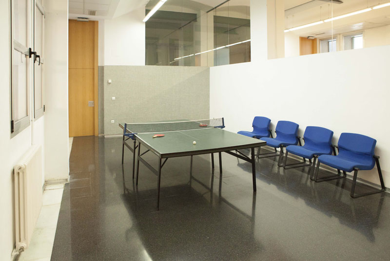 En la planta baja se encuentra la recepción, secretaría, dirección, varias salas, comedor y cocina; así como una pista polideportiva apta para practicar fútbol sala, balonmano, baloncesto y otras actividades al aire libre.