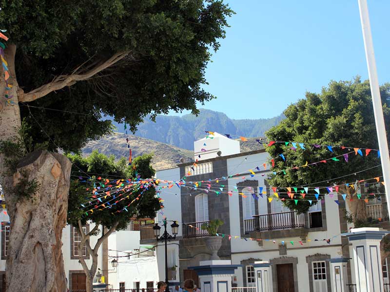 Estamos situados justo en la plaza central de Agaete, un sitio estratégico ya que desde aquí se pueden visitar los lugares más interesantes caminando o con nuestras bicis gratis.