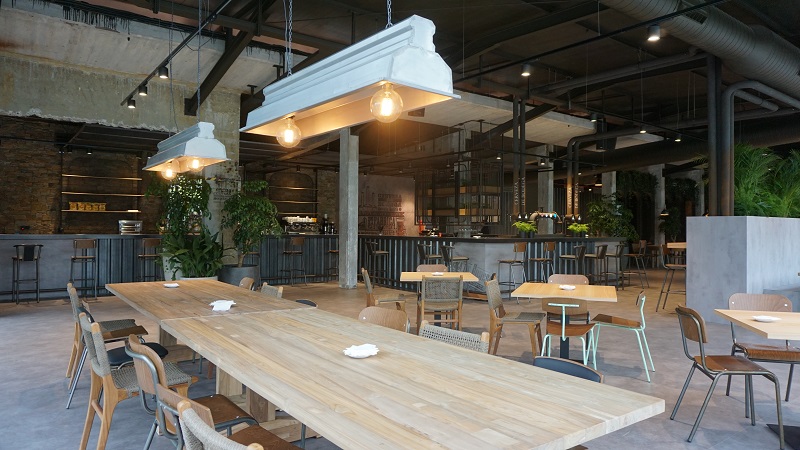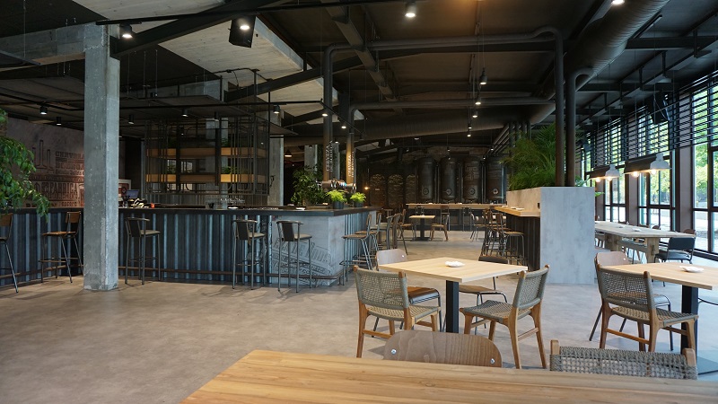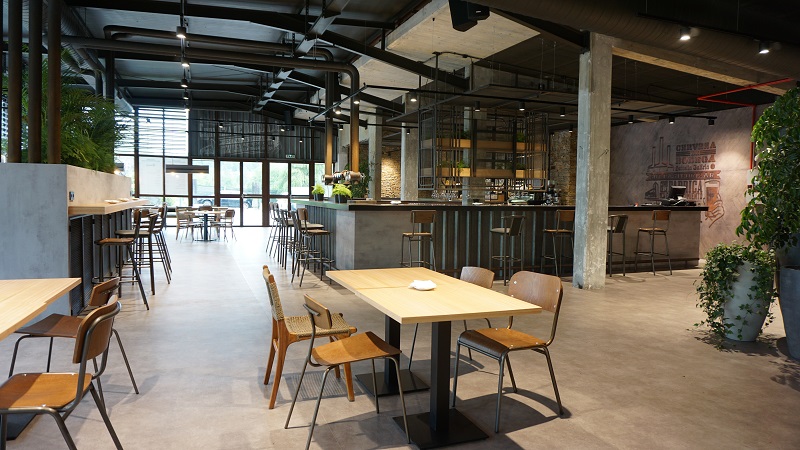 El espacio se distribuye en la zona de albergue, en la que se encuentran los pabellones de habitaciones; la cervecería, en la que se sirve diariamente el buffet desayuno, así como un menú de comidas de lunes a viernes, así como bebidas y platos a la carta; la plaza central, con numerosas tiendas y servicios y la zona de ocio, que incluye amplias zonas verdes, piscinas de pago con solario e incluso un auditorio que es escenario de importantes citas musicales.