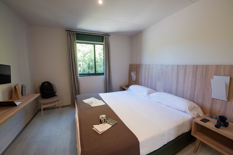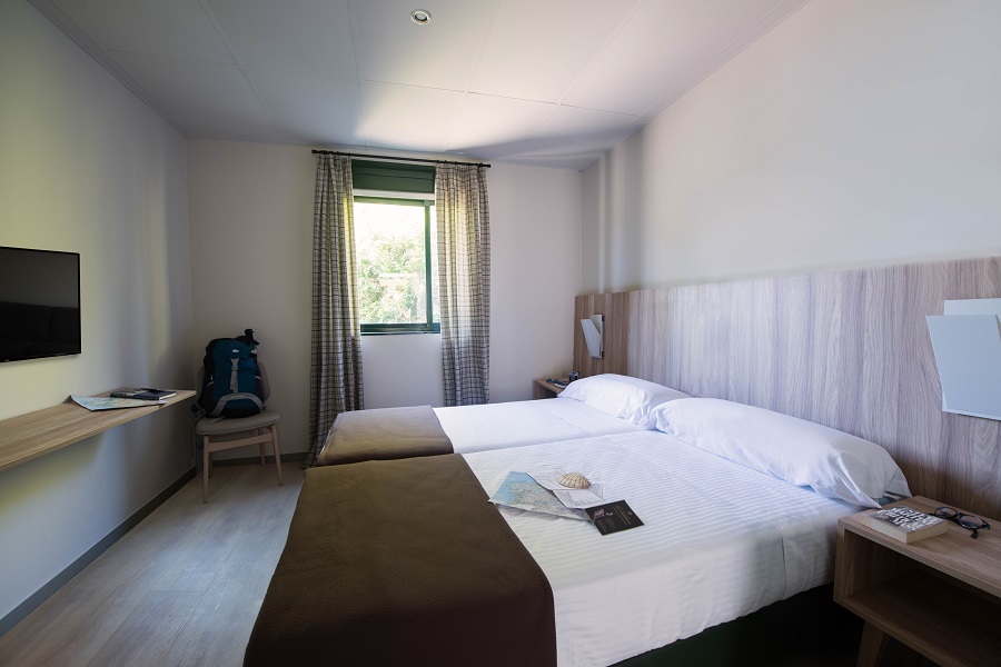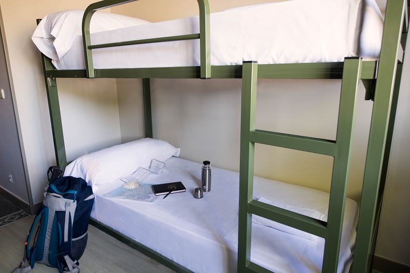 Las habitaciones compartidas se distribuyen en estancias para 8 y 4 personas, con 4 y 2 literas respectivamente. Además, el albergue también incluye habitaciones de uso exclusivamente femenino.