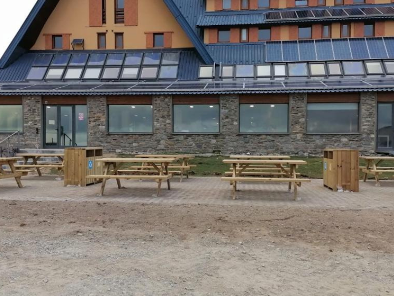 Servicios: Comedor, cafetería (venta de bocadillos), máquinas automáticas de bebidas frías, alquiler de toallas, consigna y información de rutas de excursiones.