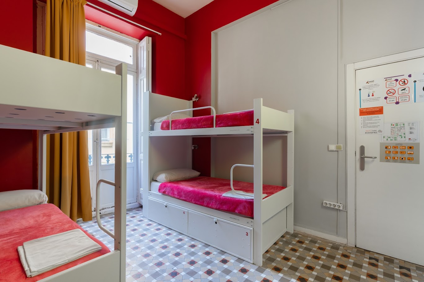 Red Nest Hostel es un hostal moderno y colorido, situado en el centro de Valencia, a 5 minutos de la estación de metro de Colón. Ofrece habitaciones compartidas de 4, 6, 8 y 12 camas y habitaciones privadas también. Las habitaciones más grandes se dividen en masculinas, femeninas y mixtas, y todas las habitaciones del albergue disponen de taquillas, aire acondicionado y calefacción.
