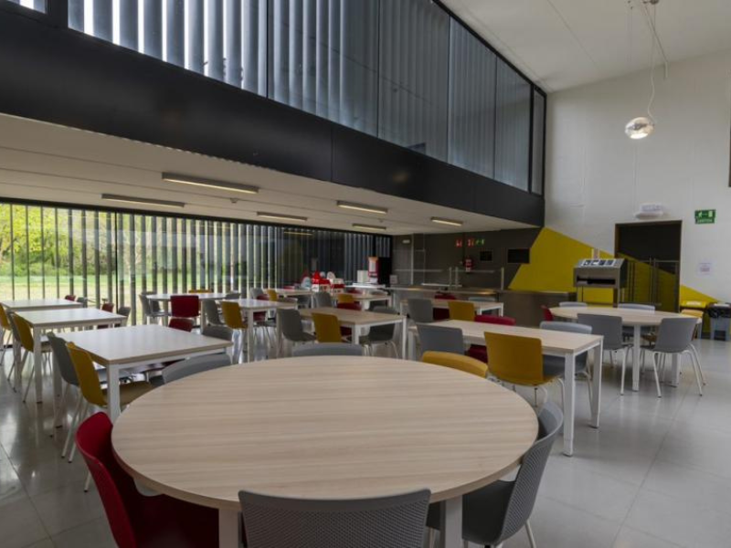 Dispone de instalaciones anexas a la albergue de pabellón deportivo, piscinas y campo de fútbol municipal.