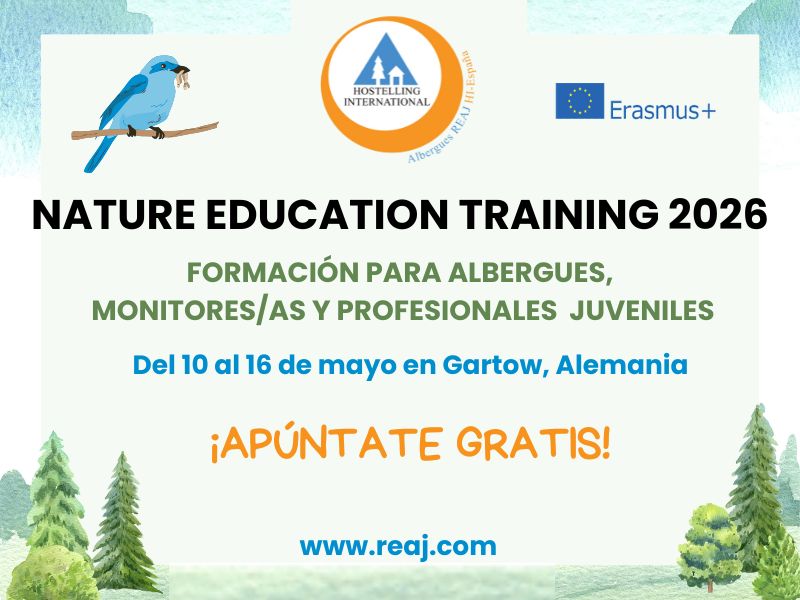 REAJ participa en un nuevo Erasmus+ en colaboración JANUN y con las asociaciones de albergues de Eslovenia y Portugal. Se trata de una formación en Alemania de una semana de duración. Aprenderás a desarrollar e implementar programas de educación en la naturaleza para jóvenes, enriqueciendo así tu oferta de actividades para grupos juveniles. ¿Te interesa?