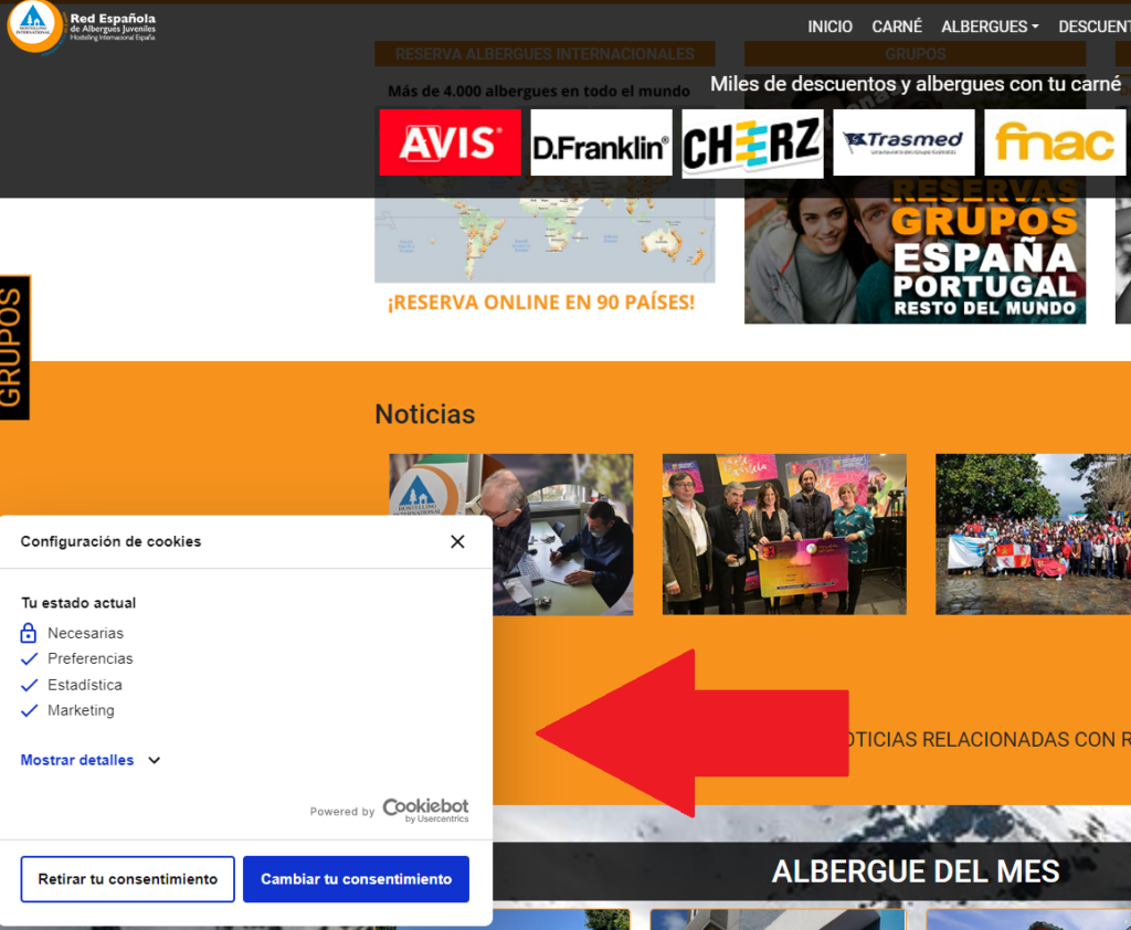 Por otro lado, en caso de querer cambiar la configuración de las cookies de la web www.reaj.com puede hacerlo accediendo al «clip» que aparece en el lateral inferior izquierdo de la web, como indicamos en la siguiente imagen: